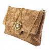 Bolso de mano con sujeción de muñeca en tela y polipiel. Colores: Azul. Marrón. Beige. Naranja. Medidas: 29x16x6 cm.