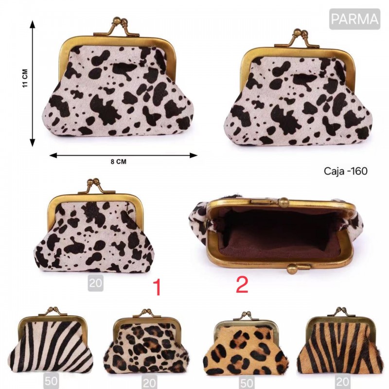 MONEDERO PIEL DE ANIMAL PRINT ,CIERRE CON LAS BOLITAS DE METAL A PRESION.