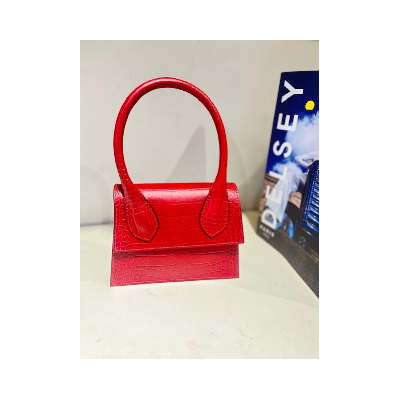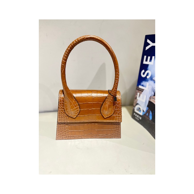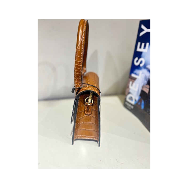 BOLSO DE PIEL CIERRE CON IMAN EN LA SOLAPA ,ASA DE MANO Y ASA CADENA LARGA PARA LLEVAR AL HOMBRO,INTERIOR SIN FORRO.